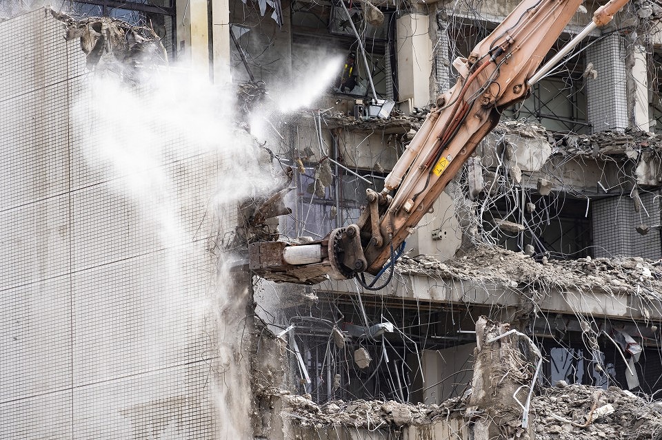 鉄筋コンクリート造やコンクリートで造られた建造物などを、手作業と重機作業を併用して解体していきます。